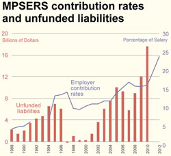 According to a recent state report, Michigan’s retirement funds will have to earn more than 11 percent on its investments on average for the next 10 years to get back to fully funded status without a bailout.