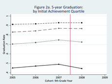 Overall, researchers found that the graduation rate among these students declined from 72 percent to 70 percent, meaning that about 2,600 more students failed to graduate after four years in a Michigan high school. However, the more interesting finding is how higher-achieving students (the top quartile of entering students) compared to lower achieving students (the bottom quartile of entering students).