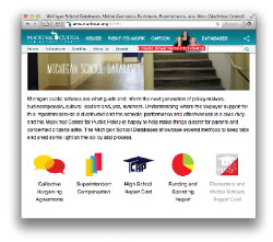 The popularity of this new database has also helped spark new interest in the other valuable information that the Mackinac Center makes available to the public on its Web site. Web hits of the Center’s other school-related databases — union contracts, funding and spending, and academic performance — all increased as a result of the superintendent database.