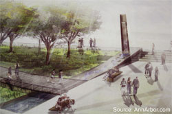 On July 22, MichCapCon.com Senior Capitol Correspondent Tom Gantert wrote an article headlined "The Art of the Ann Arbor City Budget." Gantert reported that while the city of Ann Arbor was laying off firefighters as a way of balancing a budget overspent by several million dollars, the city was also paying $850,000 for a water sculpture to sit outside a new police and courts building.