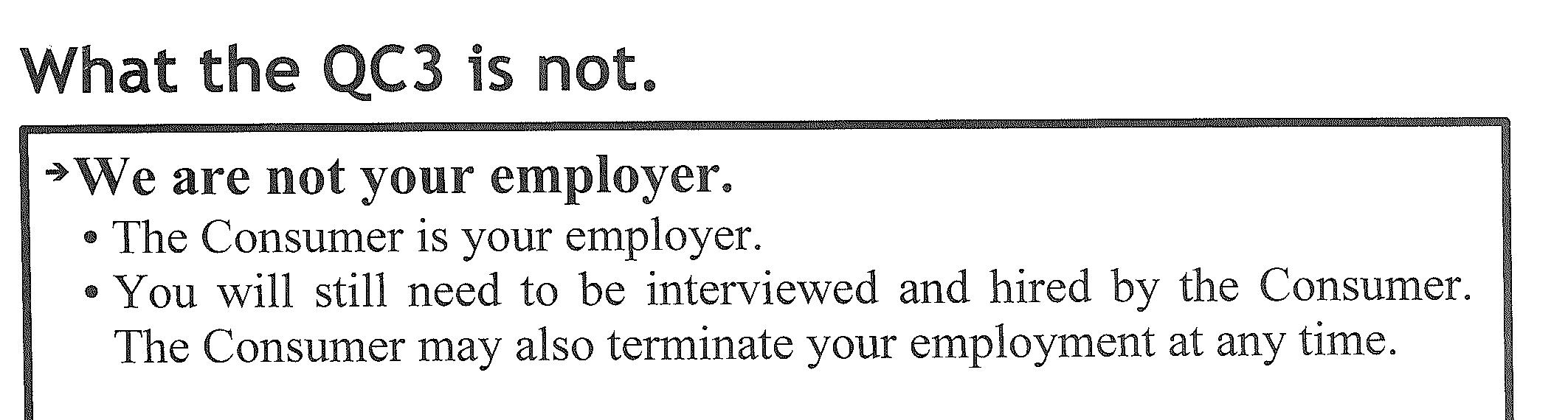 The following is information obtained through a Freedom of Information Act request has been handed out by the MQC3 to so-called home health care workers seeking employment in the Home Help Program.