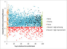 Administrators are scrambling to explain why high-performing schools are being called out, while lower-performing schools with smaller achievement gaps (see the chart nearby) are overlooked.