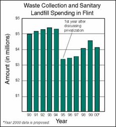 In Flint's 1995 Fiscal Year the appropriations made for the city's sanitary landfill and refuse collection dropped by 31% from the previous Fiscal Year. Since then city spending on the sanitary landfill and refuse collection have increased faster than the rate of inflation.