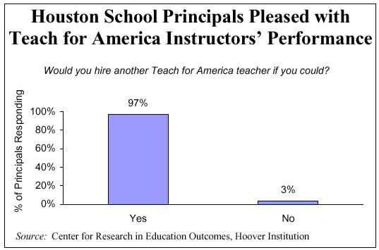The Houston Independent School District (HISD) has been employing TFA teachers since 1993. In 2001, Stanford University's Hoover Institution became interested in seeing how student learning outcomes compared between classrooms taught by TFA teachers and non-TFA teachers. Studying HISD data from 1996 through 2000, the researchers concluded that "the impact of having a TFA teacher was always positive . . . TFA is a viable and valuable source of teachers and that they perform as well as, and in many cases better than, other teachers hired by HISD." The study also found that TFA teachers were consistently the highest performing teachers, whereas the least-productive teachers were invariably non-TFA teachers.