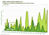Michigan governors frequently propose new initiatives in their annual State of the State speeches. The Mackinac Center for Public Policy has reviewed 38 of these addresses and categorized the new proposals to see if they would expand or limit government. In 2006, Gov. Jennifer Granholm proposed 20 new expansions of government — a record for an election year and the second highest total ever. Gov. William Milliken holds the record for the fewest proposed expansions. In 1974, he proposed zero, a number not matched since.