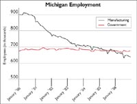 Throughout the 20th century, Michigan has been associated with manufacturing. Look up Michigan in an encyclopedia or school textbook and you will likely read about industrial giants, assembly lines, unions and mass production. But an employment shift in 2006 may signal that Michigan in the 21st century will be known as the government state.