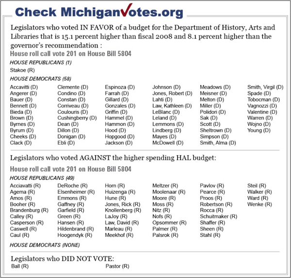 The Michiganvotes.org vote tallies for all of these legislative actions are below.