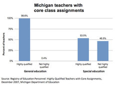 Ordered by the U.S. Department of Education to reassess the qualifications of its special education teachers, the Michigan Department of Education reported in June that about half of the core classes offered to special education students in self-contained classrooms offered instruction by non-highly qualified teachers.