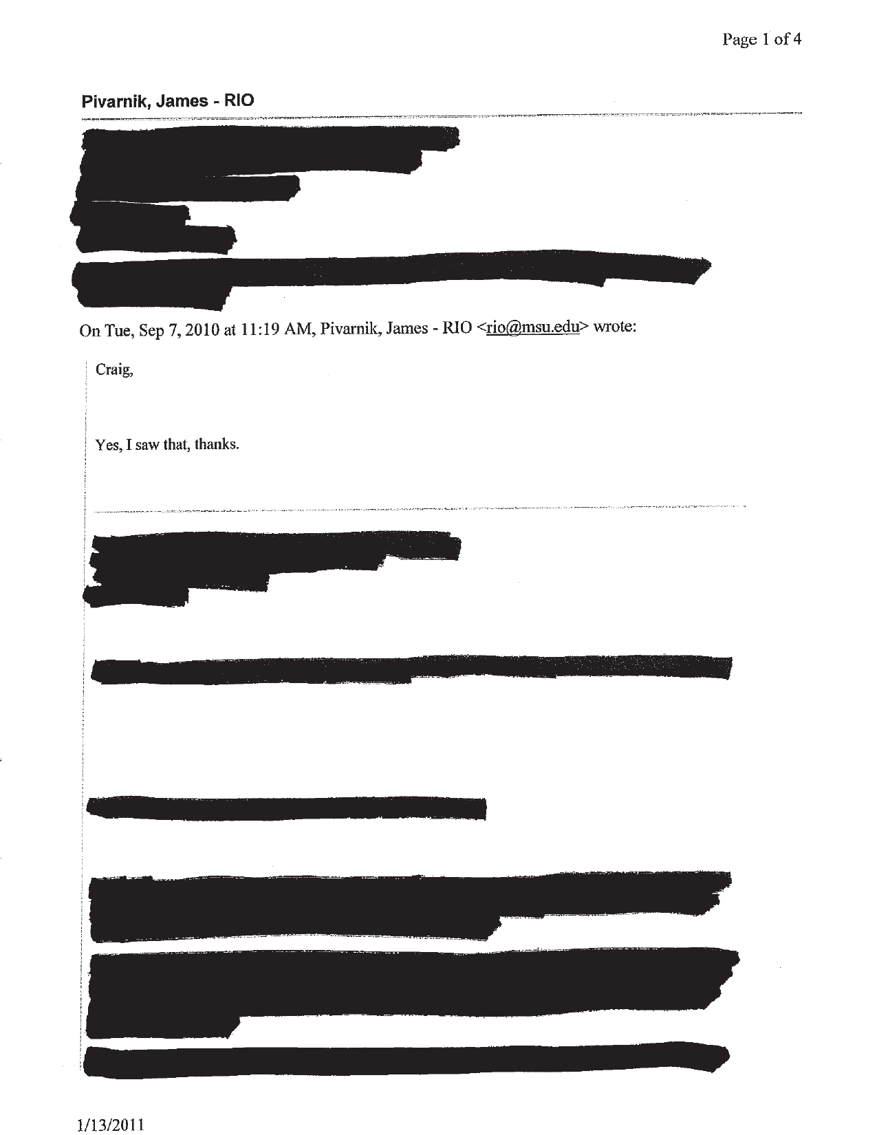 Van Beek, the education policy director at the Mackinac Center for Public Policy, discovered the alleged plagiarism in a MSU study last year. He was shocked to find out what was returned by MSU in answer to the FOIA request. There was a two-page e-mail completely redacted as well as entire paragraphs from other e-mails where little was left except the person’s name, title and contact information.