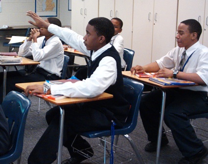 Wrapping up that lesson, Brown headed to another Cornerstone campus, where another group of eighth-graders discussed key components of the "liberty matrix:" private property, free market, a profit/loss system and limited government.
