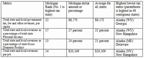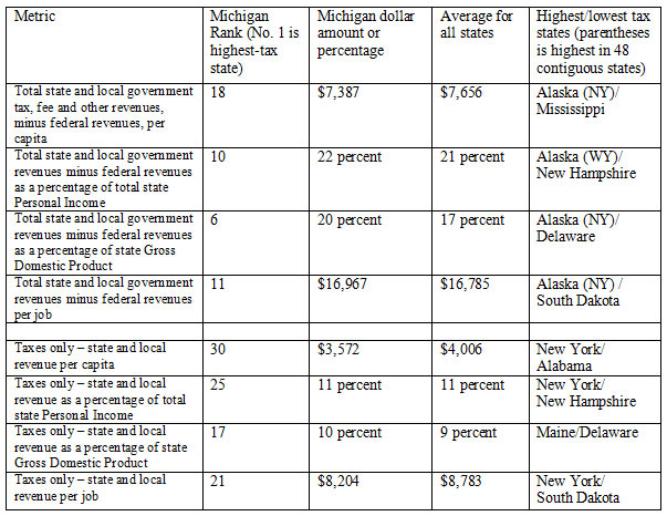 Defenders of Michigan's unreformed big government status quo like to cherry-pick measures of comparative state tax burdens that show this state to be "no worse than most."