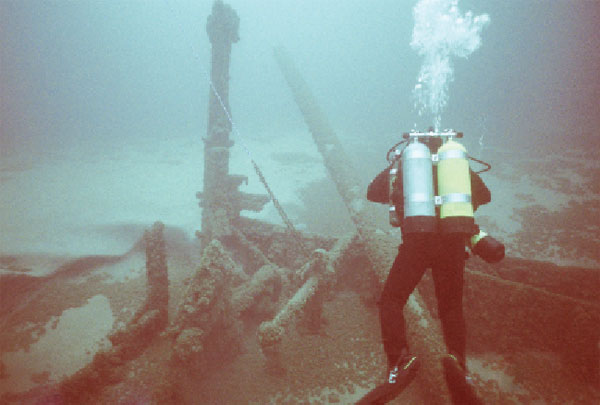 [1] Underwater photo of Farnan wreckage provided by Valerie van Heest, Director MSRA. Drawing courtesy of Robert Doornbos, colorized by Valerie van Heest, Director, MSRA