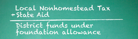The rest of each school district's annual operating revenue comes from an 18-mill property tax on the district's nonhomestead property (i.e. commercial, industrial, etc.). The amount this raises in a particular district varies, and the amount is also included in the foundation grant formula. The combined revenue from this tax and the state school aid grant represents the total amount the school will have to spend for operations under the Proposal A funding mechanism.