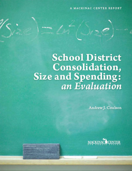 For a more comprehensive look at the issue, see "School District Consolidation, Size and Spending: an Evaluation," a 2007 study by Andrew Coulson, director of the Center for Educational Freedom at the Cato Institute and a Mackinac Center adjunct fellow.