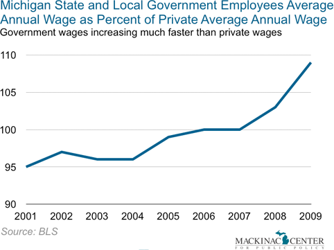 Michigan’s government wages have been increasing much faster than in the private sector, and this trend has only been exacerbated in recent years.