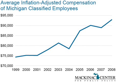 The average worker for the state of Michigan now receives a compensation package that costs $94,686: