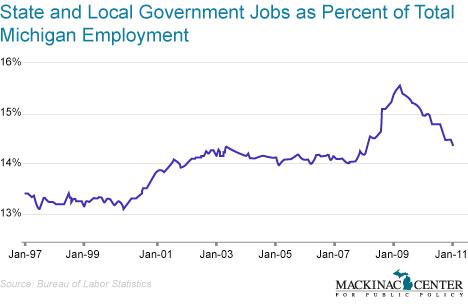 State and local government workers make up an increasing portion of the total jobs in the state: