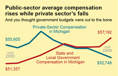 In the past decade, Michigan’s private-sector employees have taken major hits in compensation while state and local government workers have gained: