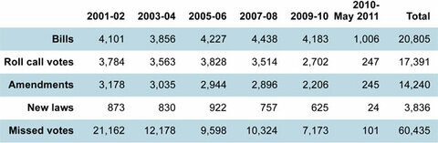 In the MichiganVotes database, there are now plain-English descriptions of nearly 22,000 bills, 18,000 roll call votes, 15,000 amendments, and 4,000 new laws adopted since the start of 2001.