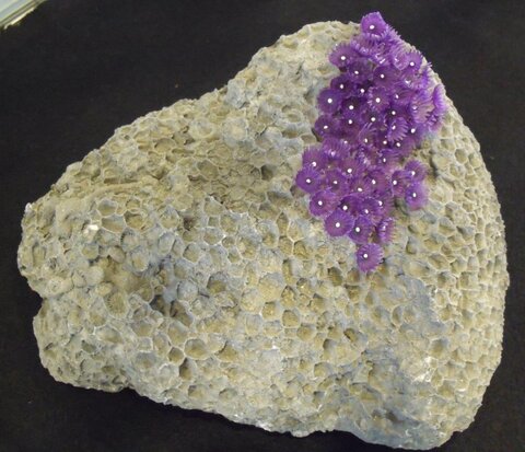 HEXAGONARIA coral head with several simulated coral polyps as an example of how this creature may have looked in life.