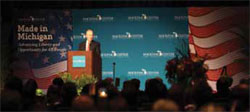 on Nov. 14 in Lansing. Gov. Daniels, enthusiastically introduced by Michigan