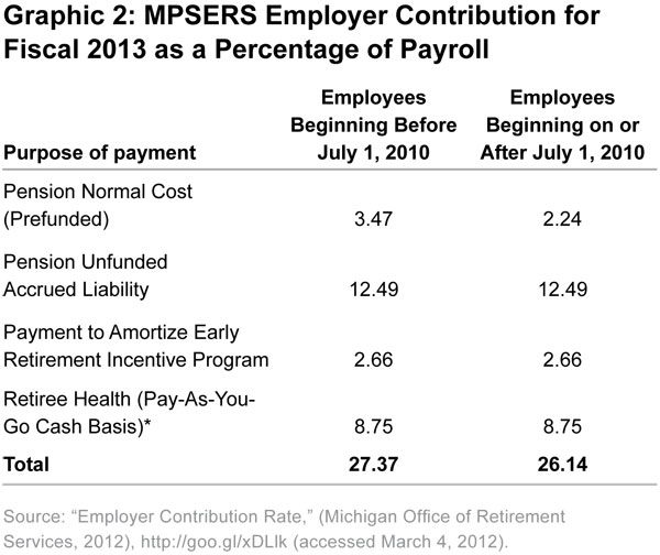 Current state policy is to charge it as a percentage of payroll, but there are alternatives. For instance, the state could directly pay MPSERS unfunded liabilities, perhaps with money otherwise directed to districts’ foundation allowances. (This is not unprecedented — prior to proposal A, the state directly paid most MPSERS contributions.)