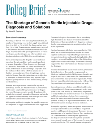 3 Robert Lowes, “Sterile Injectables Account for Most of Drug Shortage,”(http://www.medscape.com, 2011), (accessed June 12, 2012). (Available with free registration.)