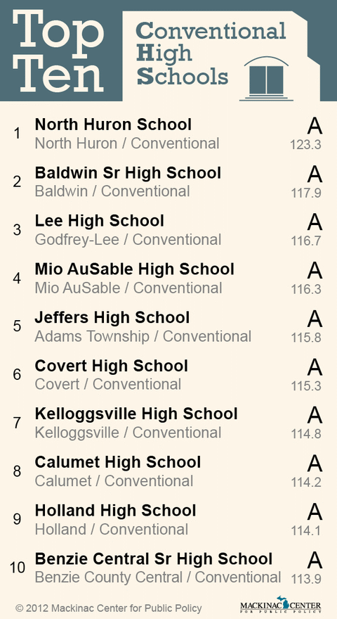 Our new "Context and Performance" Report Card factors student poverty levels into four years of standardized test scores for nearly 600 public high schools in Michigan and ranks the schools accordingly. Here's a list of the top 10 conventional high schools — that is, district-run schools that are neither charter schools nor selective-admissions schools.