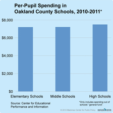 Per-pupil spending in high schools on average in Oakland County was only 4 percent more than what is spent on average in elementary schools.