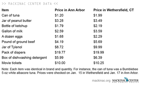 On top of the added cost of goods, Connecticut levies a 6.35 percent sales tax compared to Michigan’s 6 percent sales tax.