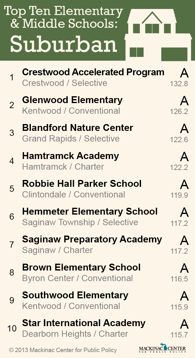 Here's a list of the top performing suburban elementary and middle schools on the report card.