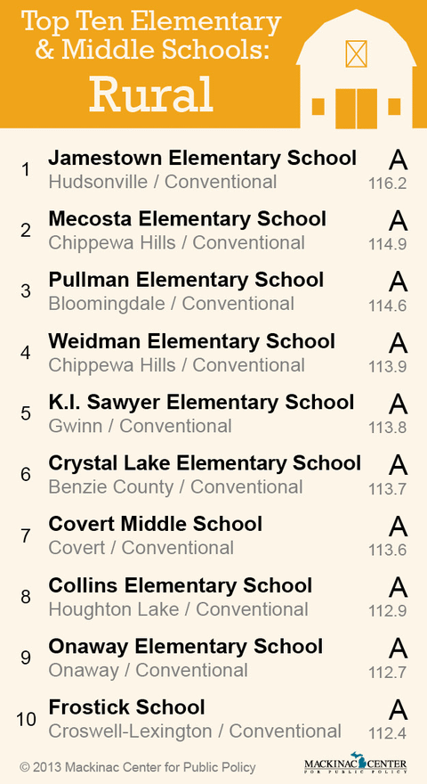 Here's a list of the top performing rural elementary and middle schools on the report card.