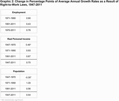 Graphic 2: Change in Percentage Points of Average Annual Growth Rates as a Result of Right-to-Work Laws, 1947-2011