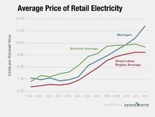 The use of Texas as an example of failed deregulation due to its impact on prices in the Lone Star State is puzzling. As outlined in a recent report by the Michigan Public Service Commission, the average residential retail price of electricity in Michigan increased faster than Texas's over the last decade and remains significantly higher. Texas's rates were about eight cents per kilowatt hour in 2000 and about 11 cents in 2013. Michigan's rates were about 11 cents per kilowatt hour in 2000 and increased to almost 15 cents in 2013, the highest in the Midwest region and 11th highest in the nation.
