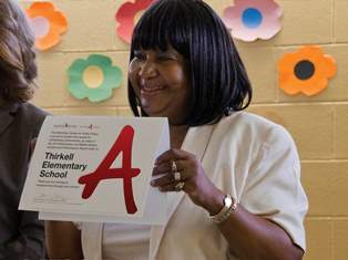 Reporter Lori Higgins wrote that Thirkell was "defying the odds by posting strong proficiency rates on the MEAP..." Editorial Page Editor Stephen Henderson characterized Thirkell in a column as having an environment of "focus and consistency," with a "dynamic and skilled" principal.