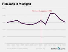 According to the federal Bureau of Labor Statistics, Michigan had 1,561 film jobs in 2013 (the latest year information is available). In 2008, the state had 1,663 film jobs. See chart nearby.