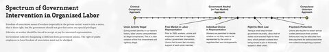 In 1999 Robert P. Hunter, a Senior Fellow in Labor Policy for the Mackinac Center for Public Policy, created the Spectrum of Government Intervention in Organized Labor. On one side of the spectrum was government outlawing unions, labeling them a criminal conspiracy. On the other side was forcing all workers to be members of a union.