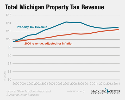 The total value of property taxes collected in Michigan increased slightly from $12.8 billion in 2013 to $13.0 billion in 2014, a 1.7 percent increase, according to the state’s annual property tax report. This exceeded the 1.0 percent inflation growth for the Detroit metropolitan statistical area over the same period.