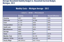 The report says the “Household Survival Budget” for a Michigan family of four is $50,345 and in order to live with “stability” (“one that enables not just survival, but self-sufficiency”) in Michigan, a family of four needs $92,409.