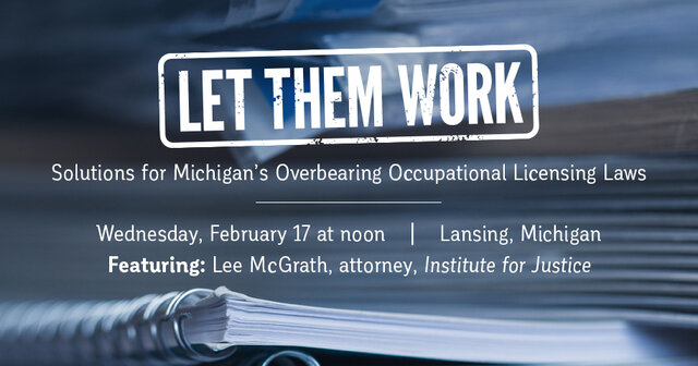 But the Great Lakes State is still fairly heavily regulated when it comes to occupational licensing. If this issue interests you, the Mackinac Center will be hosting a free event (with lunch included) in Lansing on Wed., Feb. 17, entitled, “Let Them Work: Solutions for Michigan’s Overbearing Occupational Licensing Laws.” Here’s the synopsis: