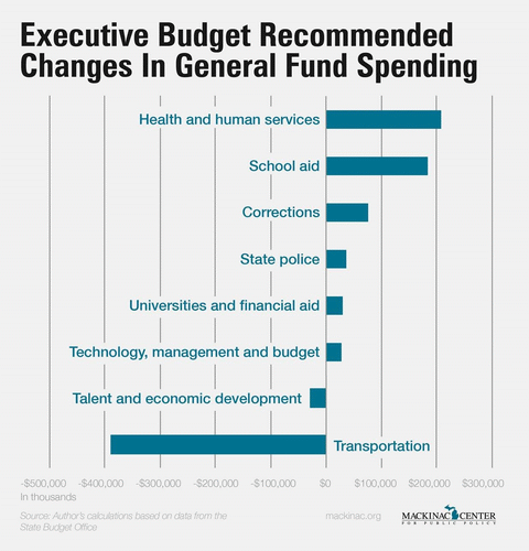 The largest proposed change in Gov. Rick Snyder’s executive budget is to use money freed up by a tax hike for roads to pay for the state’s Medicaid expansion.