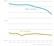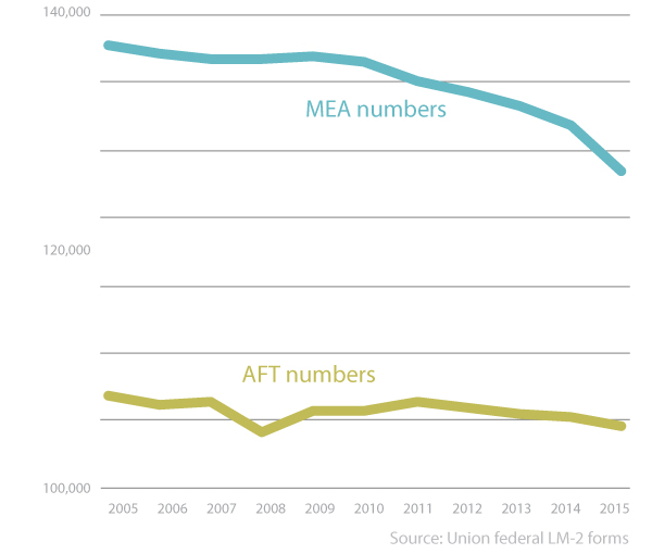 In a yearly report filed with the federal government, it was revealed that the union lost another 13,300 members from 2014 to 2015.