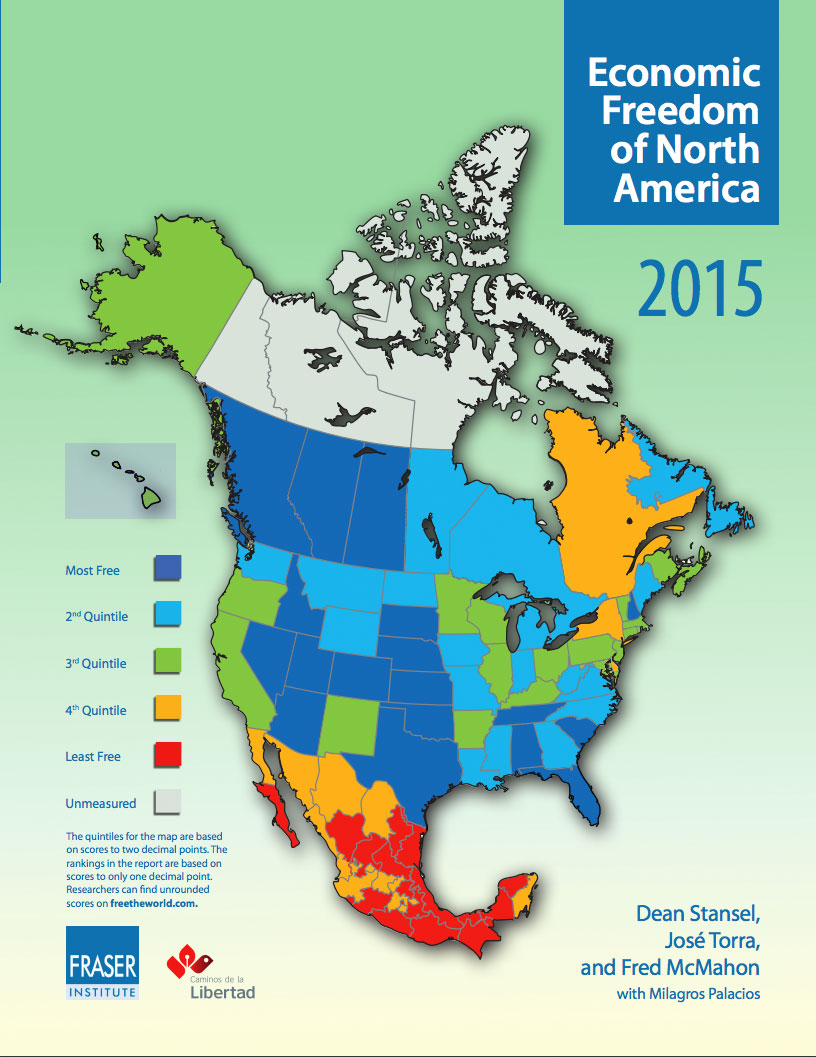 The indexes examine variables that indicate the extent to which the governments of a given region forbid or permit voluntary association in economic matters. For Fraser’s World Index, the relevant variables include “freedom to trade internationally” and “access to sound money.” At the state level, they include labor market freedom, taxes, and the magnitude of government spending.