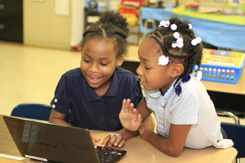 At least part of the explanation for the accolades can be found on classroom and hallway walls. The emphases are consistently visible: learning objectives, vocabulary words, behavioral expectations, and school mission and vision statements are present in every classroom.
