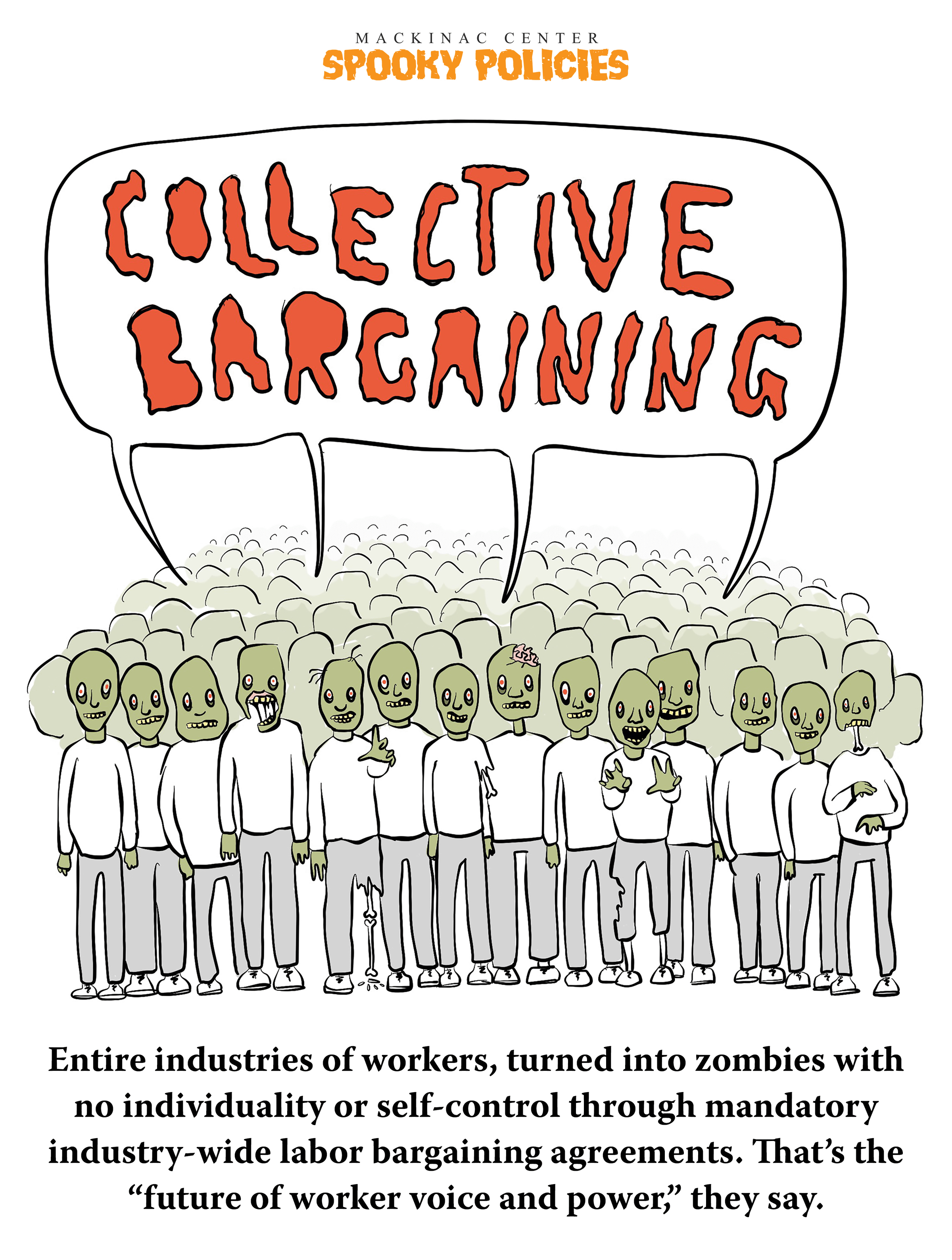 - Entire industries of workers, turned into zombies with no individuality or self-control through mandatory industry-wide labor bargaining agreements. That’s the “future of worker voice and power,” they say.