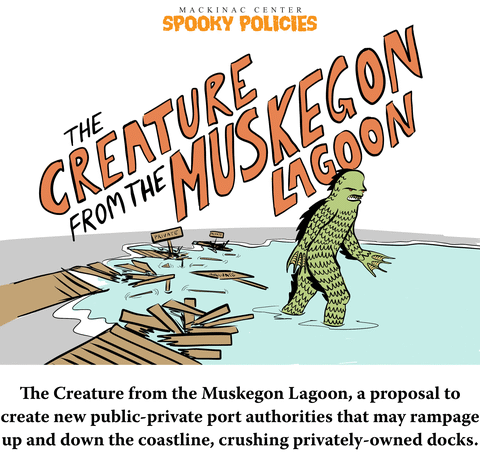 - The Creature from the Muskegon Lagoon: A proposal to create new public-private port authorities that may rampage up and down the coastline, crushing privately-owned docks.