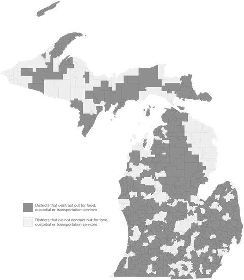 In 2001, contracting out for school support services by Michigan school districts was a rare practice. Less than one in three districts used private providers for food, custodial or transportation services. Today, 16 years later, the tables have completely turned: it is more unusual to find a district that does not outsource at least one of these support services than to find one that does.