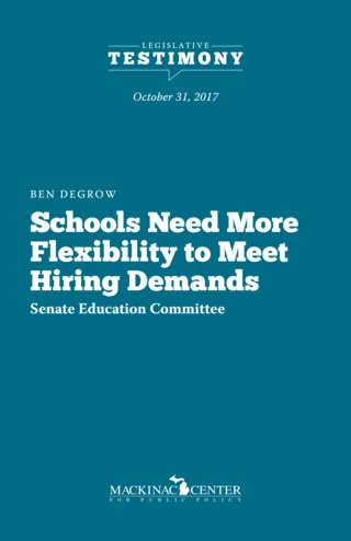 The following is testimony presented to the Senate Education Committee by the Mackinac Center’s Director of Education Policy Ben DeGrow on October 31, 2017.