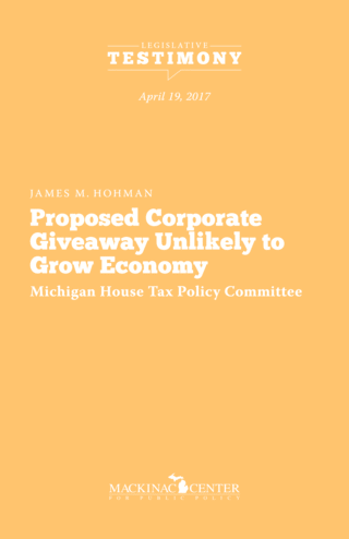 The following is testimony presented to the Michigan House Tax Policy Committee by the Mackinac Center’s Assistant Director of Fiscal Policy James M. Hohman on April 19, 2017.