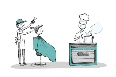 Here’s the answer to the quiz: The occupations are listed in ascending order of required training. Chefs need zero hours of mandatory training, as there is no chef license. Auto mechanics take a six-hour course and one test. EMTs need 194 hours of training. Carpenters must have 60 hours of class time. Police officers work through a 594-hour curriculum. Airline pilots flying commercial jets need 1,500 hours of flight instruction. Barbers? They must complete 1,800 hours of education.